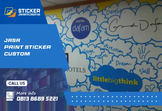 Sticker dapat diaplikasikan pada berbagai media seperti kaca, dinding, acrylic, etalase, partisi kantor, serta permukaan kendaraan. Jika Anda butuh hasil yang kuat, rapi, dan sesuai identitas brand, layanan cetak sticker custom Jakarta dari kami siap membantu.