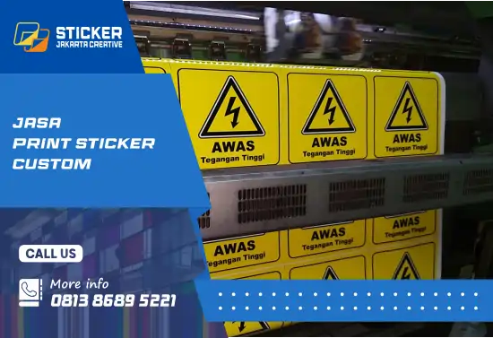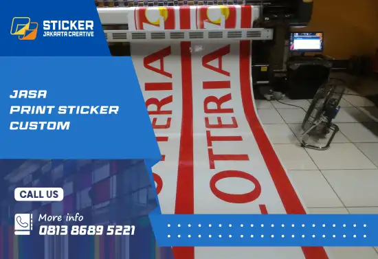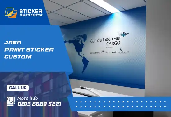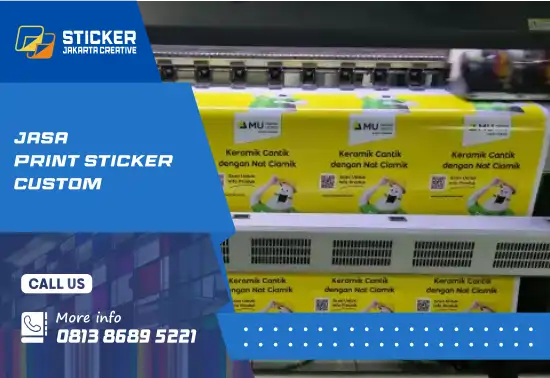 StickerJakartaCreative.com melayani print custom sticker di Jakarta dengan layanan cetak dan pemasangan sesuai desain atau gambar Anda. Kami menggunakan bahan sticker vinyl premium yang halus, tahan air, dan tidak mudah sobek, sehingga ideal untuk kebutuhan branding bisnis maupun penggunaan harian.